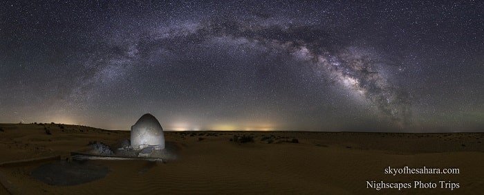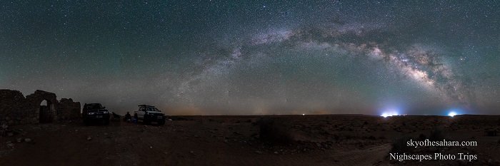 Cette catégorie regroupe des images panoramiques offrant une vue large et immersive du désert. Les photographies mettent en valeur l’étendue des paysages, les lignes d’horizon et la profondeur des scènes, de jour comme de nuit. Le format panoramique permet de restituer l’immensité du Sahara et l’équilibre entre ciel et terre.